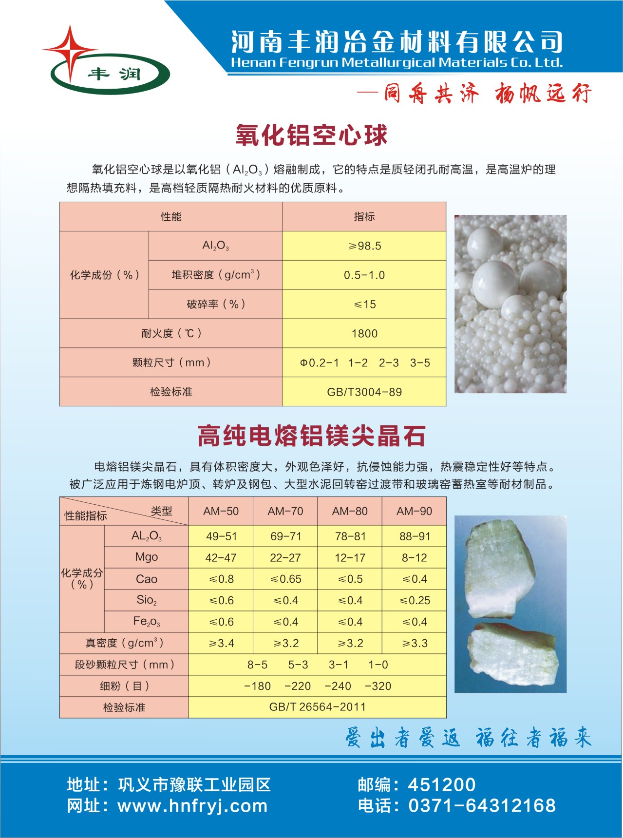 -氧化鋁空心球呈晶體狀(a-Al2O3微晶體)。成分為:Al2O3,Si2O,Fe2O3,外觀為白色空心球體。