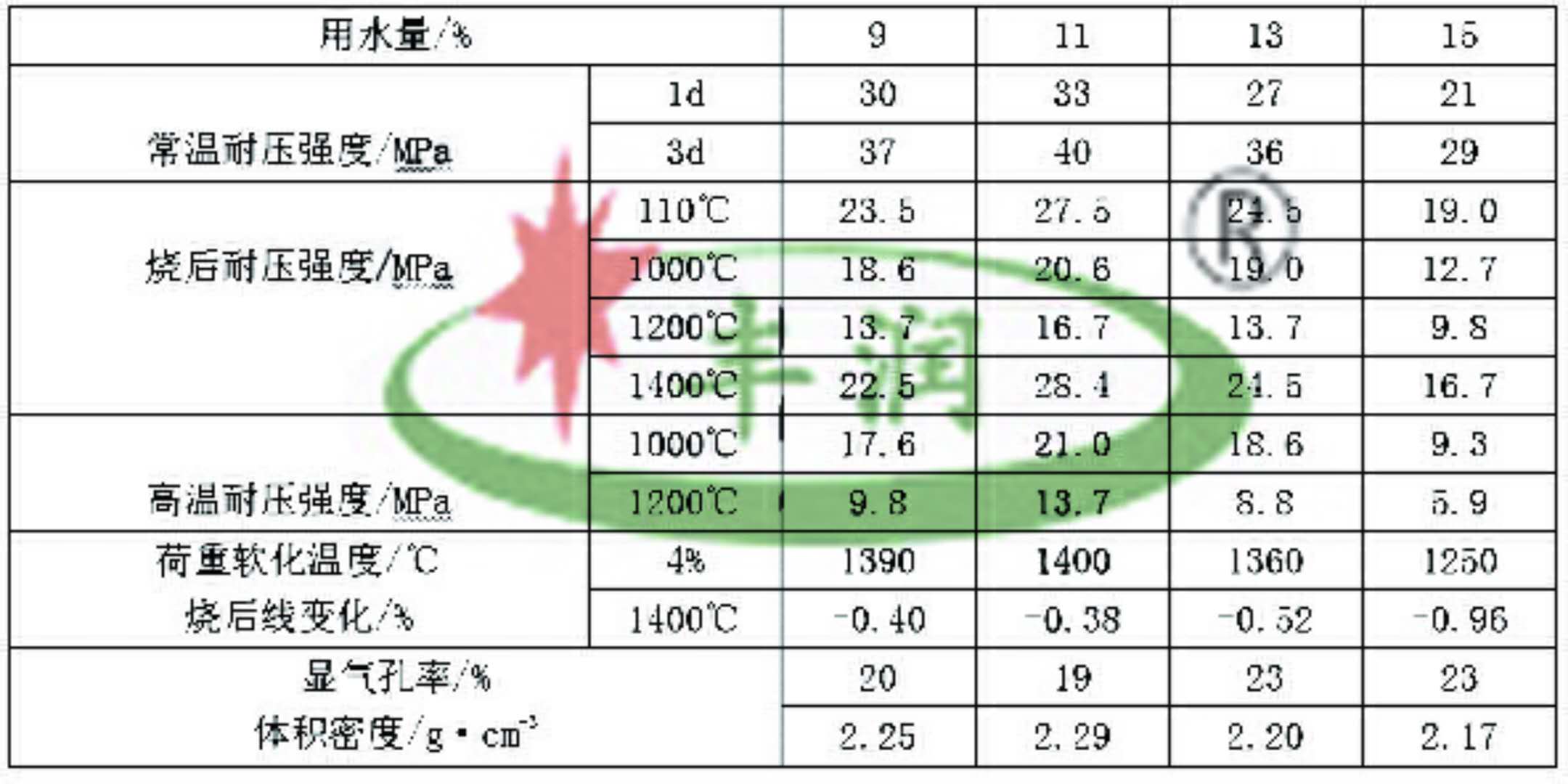 高鋁水泥性能與用水量對(duì)澆注料性能的影響