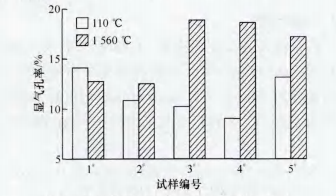 圖1 不同溫度處理后各試樣的顯氣孔率